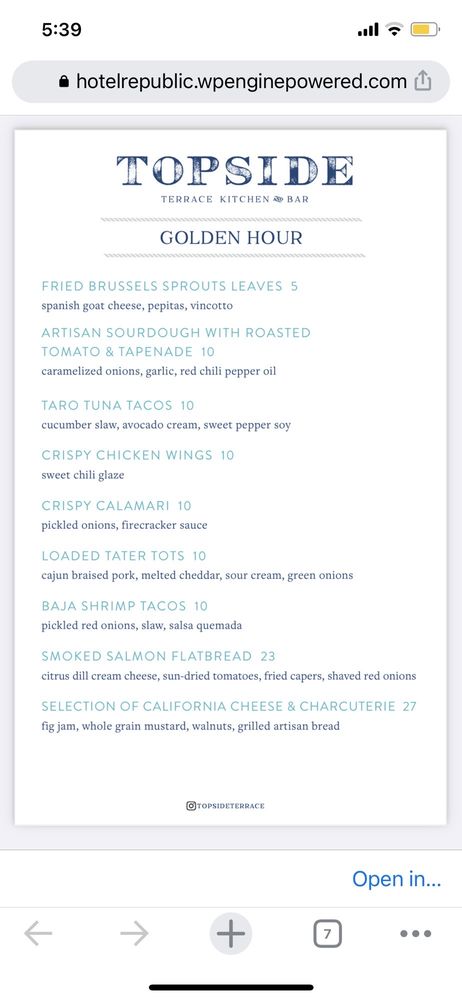 As noted by guests, the attentive service and charming decor create an inviting experience. Whether for a casual bite or a romantic dinner, Topside Terrace promises a fulfilling culinary adventure.